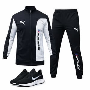 ست سوییشرت شلوار مردانه مشکی مدل MotorSport+ کفش ورزشی مردانه Nike مدل Tigo زیره سفید